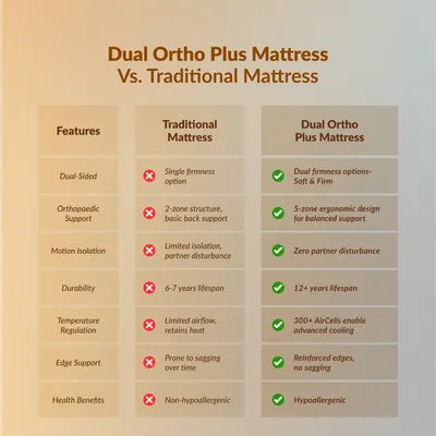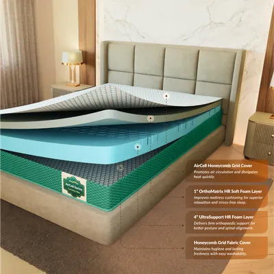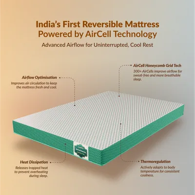 Dual Comfort Technology: Features a reversible design with soft foam on one side and firm foam on the other, letting you choose your comfort level—perfect for both relaxed lounging and firm back support. Advanced AirCell Cooling: Engineered with SleepyHug’s AirCell Honeycomb Grid Foam, this mattress ensures breathability and targeted support for joints and spine, ideal for relieving back pain. Orthopaedic Back Support: The high-resilience dual foam structure maintains spinal alignment, making it an excellent choice for those dealing with posture issues or chronic discomfort. Easy-to-Maintain Cover: Comes with a removable and washable cover made from AeroFlow fabric that keeps your sleeping surface fresh and hygienic. Multiple Size Options & Long-Term Durability: Available in Single, Double, Queen, and King sizes with a trusted 7-year manufacturer warranty.