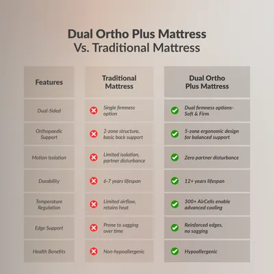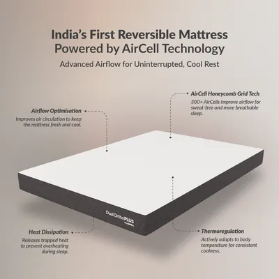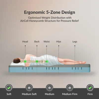 Dual Comfort Technology: Features a reversible design with soft foam on one side and firm foam on the other, letting you choose your comfort level—perfect for both relaxed lounging and firm back support. Advanced AirCell Cooling: Engineered with SleepyHug’s AirCell Honeycomb Grid Foam, this mattress ensures breathability and targeted support for joints and spine, ideal for relieving back pain. Orthopaedic Back Support: The high-resilience dual foam structure maintains spinal alignment, making it an excellent choice for those dealing with posture issues or chronic discomfort. Easy-to-Maintain Cover: Comes with a removable and washable cover made from AeroFlow fabric that keeps your sleeping surface fresh and hygienic. Multiple Size Options & Long-Term Durability: Available in Single, Double, Queen, and King sizes with a trusted 7-year manufacturer warranty.